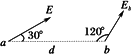 在點(diǎn)電荷Q產(chǎn)生的電場(chǎng)中有a,b兩點(diǎn),相距為d,已知a點(diǎn)的場(chǎng)強(qiáng)大小為E,方向與ab連線成30°角,b點(diǎn)的場(chǎng)強(qiáng)方向與ab連線成120°角,如圖所示,則b點(diǎn)的場(chǎng)強(qiáng)大小為________