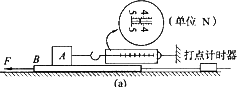 (1)在一次探究活動(dòng)中,某同學(xué)用如圖(a)所示的裝置測量鐵塊A與放在光滑水平桌面上的金屬板B之間的動(dòng)摩擦因數(shù),已知鐵塊A的質(zhì)量mA=1.5 kg,用水平恒力F向左拉金屬板B,使其向左運(yùn)動(dòng),彈簧秤示數(shù)的放大情況如圖所示,g取10 m/s2,則A、B間的動(dòng)摩擦因數(shù)μ=________