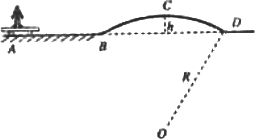 滑板運動已成為青少年所喜愛的一種體育運動,如圖所示,某同學正在進行滑板運動.圖中AB段路面是水平的,BCD是一段半徑R=20 m的拱起的圓弧路面,圓弧的最高點C比AB段路面高出h=1.25 m.已知人與滑板的總質(zhì)量為M=60 kg.該同學自A點由靜止開始運動,在AB路段他單腿用力蹬地,到達B點前停止蹬地,然后沖上圓弧路段,結果到達C點時恰好對地面壓力為零,不計滑板與各路段之間的摩擦力及經(jīng)過B點時的能量損失(g取10 m/s2).