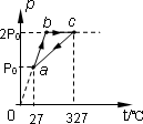 如圖所示,一定質(zhì)量的理想氣體從狀態(tài)a→狀態(tài)b→狀態(tài)c→狀態(tài)a,其中ab的延長(zhǎng)線通過(guò)坐標(biāo)原點(diǎn)O.則氣體在狀態(tài)b的溫度是________℃;氣體從狀態(tài)c→狀態(tài)a過(guò)程中體積變化量為_(kāi)_______.