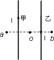 如圖所示,同一平面內(nèi)有兩根互相平行的長(zhǎng)直導(dǎo)線甲和乙,間距為r0,通有大小均為I且方向相反的電流,a、b兩點(diǎn)與兩導(dǎo)線共面,其連線與導(dǎo)線垂直,a、b到兩導(dǎo)線中點(diǎn)O的連線長(zhǎng)度均為r0.已知直線電流I產(chǎn)生的磁場(chǎng)中磁感應(yīng)強(qiáng)度的分布規(guī)律是B=K