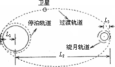 我國(guó)發(fā)射的“嫦娥一號(hào)”衛(wèi)星發(fā)射后首先進(jìn)入繞地球運(yùn)行的“停泊軌道”,通過(guò)加速再進(jìn)入橢圓“過(guò)渡軌道”,該軌道離地心最近距離為L1,最遠(yuǎn)距離為L2,衛(wèi)星快要到達(dá)月球時(shí),依靠火箭的反向助推器減速,被月球引力“俘獲”后,成為環(huán)月球衛(wèi)星,最終在離月心距離L3的“繞月軌道”上飛行.已知地球半徑為R,月球半徑為r,地球表面重力加速度為g,月球表面的重力加速度為g/6,求:
