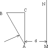如圖所示,有一截面是直角三角形的棱鏡ABC,∠A=30o.它對紅光的折射率為n1.對紫光的折射率為n2.在距AC邊d處有一與AC平行的光屏.現(xiàn)有由以上兩種色光組成的很細(xì)的光束垂直AB邊射入棱鏡.