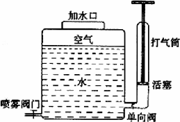 噴霧器內(nèi)有10 L水,上部封閉有1 atm的空氣2 L.關(guān)閉噴霧閥門,用打氣筒向噴霧器內(nèi)再充入1 atm的空氣3 L(設(shè)外界環(huán)境溫度一定,空氣可看作理想氣體).