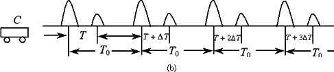 現(xiàn)固定裝置B,并將它對準勻速行駛的小車C,使其每隔固定時間T0發(fā)射一短促的超聲波脈沖,如圖(b)中幅度較大的波形,反射波滯后的時間已在圖中標出,其中T和ΔT為已知量,另外還知道該測定條件下超聲波在空氣中的速度為v0,根據(jù)所給信息求小車的運動方向和速度大小.