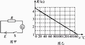 溫度傳感器廣泛應(yīng)用于室內(nèi)空調(diào)、電冰箱和微波爐等家用電器中,它是利用熱敏電阻的隨溫度變化而變化的特性工作的.在圖甲中,電源的電動(dòng)勢(shì)E=9.0 V,內(nèi)電阻可忽略不計(jì);G為靈敏電流表,內(nèi)阻Rg保持不變;R為熱敏電阻,其電阻值與溫度變化關(guān)系如圖乙的Rt圖線所示.閉合開(kāi)關(guān)S,當(dāng)R的溫度等于20℃時(shí),電流表示數(shù)I1=2 mA,則當(dāng)電流表的示數(shù)I2=3.6 mA時(shí),熱敏電阻R的溫度是多少攝氏度?