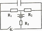 如圖所示電路中,R1=3 Ω,R2=6 Ω,R3=1.5 Ω,C=30 μF.當(dāng)開(kāi)關(guān)K斷開(kāi)時(shí),電源釋放的功率為2 W;當(dāng)開(kāi)關(guān)K閉合時(shí),電源釋放的功率為4 W,求: