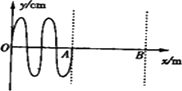 一列簡諧橫波由O點沿x軸正方向傳播,如圖所示,OA=0.4 m,振動從O傳播到A點所用時間為5×10-2 s,當(dāng)這列波進(jìn)入AB區(qū)域時,它的傳播速度變?yōu)樵瓉淼?.5倍,那么:這列波在OA和AB區(qū)域的波速和波長分別是多少?