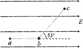 在如圖所示水平向右的勻強(qiáng)電場中,有a、b、c三點(diǎn),ab=10 cm,bc=15 cm,其中ab沿電場方向,bc和電場方向成53°角.一個(gè)電荷量為q=4×10-7 C的正電荷從a點(diǎn)移到b點(diǎn),電場力做功為W=1.2×10-5 J,已知sin53°=0.8.求:
