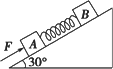 如圖所示,質量相等的A、B兩物體在平行于固定斜面的推力F的作用下,沿光滑斜面做勻速直線運動,A、B間輕彈簧的勁度系數(shù)為k,斜面的傾角為30°,則勻速運動時彈簧的壓縮量為多少?