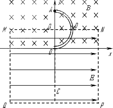 如圖所示,矩形區(qū)域MNPQ內有水平向右的勻強電場;在y≥0的區(qū)域內還存在垂直于坐標平面向里的勻強磁場,磁感應強度大小為B.半徑為R的光滑絕緣空心半圓細管ADO固定在豎直平面內,半圓管的一半處于電場中,圓心O1為MN的中點,直徑AO垂直于水平虛線MN.一質量為m、電荷量為q的帶正電小球(可視為質點)從半圓管的A點由靜止滑入管內,從O點穿出后恰好通過O點正下方的C點.已知重力加速度為g,電場強度的大小E=