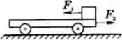 如圖所示,質量2.0kg的小車放在光滑水平面上,在小車右端放一質量為1.0kg的物塊,物塊與小車之間的動摩擦因數(shù)為0.5,當物塊與小車同時分別受到水平向左F1=6.0N的拉力和水平向右F2=9.0N的拉力,經(jīng)0.4s同時撤去兩力,為使物塊不從小車上滑下,求小車最少要多長.(g取10m/s2)