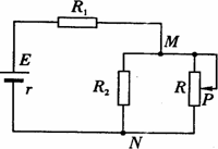 如圖所示的電路中,電源電動(dòng)勢(shì)E=6V,內(nèi)電阻r=0.5 ,可變電阻器R的最大阻值為2 .那么,在滑片P從R的最上端滑至最下端的過(guò)程中,求: