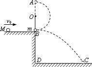 如圖所示,O為一水平軸.細(xì)繩上端固定于O軸,下端系一質(zhì)量m=1.0 kg的小球,原來處于靜止?fàn)顟B(tài),擺球與平臺的B點(diǎn)接觸,但對平臺無壓力,擺長為l=0.6 m.平臺高BD=0.80 m.一個(gè)質(zhì)量為M=2.0 kg的小球沿平臺自左向右運(yùn)動(dòng)到B處與擺球發(fā)生正碰,碰后擺球在繩的約束下做圓周運(yùn)動(dòng),經(jīng)最高點(diǎn)A時(shí),繩上的拉力T恰好等于擺球的重力,而M落在水平地面的C點(diǎn),DC=1.2 m.求:質(zhì)量為M的小球與擺球碰撞前的速度大小(不計(jì)空氣阻力,取g=10 m/s2).