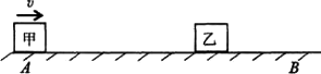 在研究物體碰撞的實(shí)驗(yàn)場(chǎng)地,一般都備有減速道,為了確保物體不沖出減速道,常常要在減速道上堆放障礙物,如沙包等.右圖為減速道示意圖,A、B為水平減速道兩端,長s=10 m,乙物體為障礙物,質(zhì)量M=120 kg.現(xiàn)有甲物體質(zhì)量m=40 kg,以速度v=20 m/s沖人減速道,與障礙物相碰后合為一體(設(shè)碰撞過程時(shí)間極短).為了保證兩物體碰撞后不沖出減速道,又不至于過早地相碰造成較大損傷,問障礙物應(yīng)放在距減速道A端多遠(yuǎn)的位置上?(兩物體與減速道的動(dòng)摩擦因數(shù)均為μ=0.4,取g=10 m/s2)