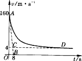 “神舟”五號(hào)飛船完成了預(yù)定的空間科學(xué)和技術(shù)實(shí)驗(yàn)任務(wù)后返回艙開(kāi)始從太空向地球表面按預(yù)定軌道返回,返回艙開(kāi)始時(shí)通過(guò)自身制動(dòng)發(fā)動(dòng)機(jī)進(jìn)行調(diào)控減速下降,穿越大氣層后,在一定的高度打開(kāi)阻力降落傘進(jìn)一步減速下落,這一過(guò)程中若返回艙所受空氣摩擦阻力與速度的平方成正比,比例系數(shù)(空氣阻力系數(shù))為k,所受空氣浮力恒定不變,且認(rèn)為豎直降落.從某時(shí)刻開(kāi)始計(jì)時(shí),返回艙的運(yùn)動(dòng)v-t圖象如圖中的AD曲線所示,圖中AB是曲線在A點(diǎn)的切線,切線交于橫軸一點(diǎn)B,其坐標(biāo)為(8,0),CD是曲線AD的漸進(jìn)線,假如返回艙總質(zhì)量為M=400 kg,g=10 m/s2,求