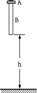 一圓環(huán)A套在一均勻圓木棒B上,A的高度相對(duì)B的長(zhǎng)度來(lái)說(shuō)可以忽略不計(jì).A和B的質(zhì)量都等于m,A和B之間的滑動(dòng)摩擦力為f(f<g).開(kāi)始時(shí)B豎直放置,下端離地面高度為h,A在B的頂端,如圖所示.讓它們由靜止開(kāi)始自由下落,當(dāng)木棒與地面相碰后,木棒以豎直向上的速度反向運(yùn)動(dòng).設(shè)碰撞時(shí)間很短,碰撞無(wú)機(jī)械能損失,不考慮空氣阻力.試求:
