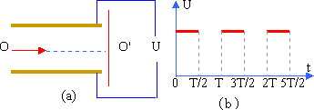 兩平行金屬板相距為d如圖(a),加上如圖(b)所示的方波形電壓,電壓的最大值為U0,周期為T.現(xiàn)有一離子束,其中每個(gè)離子的質(zhì)量為m,電量為q,從與兩板等距處沿著與板平行的方向連續(xù)地射入兩板間的電場(chǎng)中.設(shè)離子通過(guò)平行板所需的時(shí)間恰為T(與電壓變化周期相同),且所有離子都能通過(guò)兩板間的空間打在右端的熒光屏上.試求:離子擊中熒光屏上的位置的范圍.(也就是與