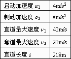 辨析題:要求摩托車由靜止開始在盡量短的時(shí)間內(nèi)走完一段直道,然后駛?cè)胍欢伟雸A形的彎道,但在彎道上行駛時(shí)車速不能太快,以免因離心作用而偏出車道.求摩托車在直道上行駛所用的最短時(shí)間.有關(guān)數(shù)據(jù)見表格.