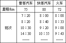 一位旅客可用三種方法從常州到蘇州旅游:第一種是乘普客汽車經(jīng)312國道到達(dá);第二種方法是乘快客汽車經(jīng)滬寧高速公路到達(dá);第三種方法是乘火車到達(dá);下面是三種車的發(fā)車時(shí)刻及里程表,已知普客汽車全程平均時(shí)速為60 km/h,快客汽車全程平均時(shí)速為100 km/h,兩車途中均不停站,火車在中途需停靠無錫站5 min,設(shè)火車進(jìn)站和出站都做勻變速直線運(yùn)動(dòng),加速度大小是2400 km/h2,途中勻速行駛,速率為120 km/h,若現(xiàn)在時(shí)刻是上午8點(diǎn)05分,這位旅客想早點(diǎn)到達(dá)蘇州,請(qǐng)你通過計(jì)算說明他該選擇乘什么車?