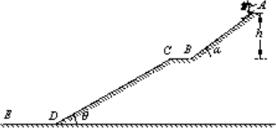 =30°,DE段是停止區(qū),AB段與BC段圓滑相連.軌道各部分與滑雪板間的動摩擦因數(shù)均為μ=0.03,圖中軌道最高點(diǎn)A處的起滑臺距起跳臺BC的豎直高度h=47 m.運(yùn)動員連同滑雪板的質(zhì)量m=60 kg,滑雪運(yùn)動員從A點(diǎn)由靜止開始起滑,通過起跳臺從C點(diǎn)水平飛出,運(yùn)動員在著陸坡CD上的著陸位置與C點(diǎn)的距離l=120 m.設(shè)運(yùn)動員在起跳前不使用雪杖助滑,忽略空氣阻力的影響,取重力加速度g=10 m/s2,sin37°=0.6,cos37°=0.8.求:
