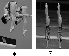 跳水是一項優(yōu)美的水上運(yùn)動,圖甲是2008年北京奧運(yùn)會跳水比賽中小將陳若琳和王鑫在跳臺上騰空而起的英姿.其中陳若琳的體重約為30 kg,身高約為1.40 m,她站在離水面10 m高的跳臺上,重心離跳臺面的高度約為0.80 m,豎直向上躍起后重心升高0.45 m達(dá)到最高點(diǎn),入水時身體豎直,當(dāng)手觸及水面時伸直雙臂做一個翻掌壓水花的動作,如圖乙所示,這時陳若琳的重心離水面約為0.80 m.設(shè)運(yùn)動員在入水及在水中下沉過程中受到的水的作用力大小不變.空氣阻力可忽略不計,重力加速度g取10 m/s2.(結(jié)果保留2位有效數(shù)字)