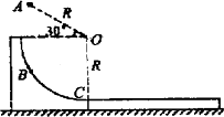 如圖所示,半徑R=0.8 m的光滑1/4圓弧軌道固定在光滑水平面上.軌道上方的A點有一個可視為質點的質量m=1 kg的小物塊,小物塊由靜止開始下落后,打在圓弧軌道上的B點但未反彈.在該瞬間碰撞過程中,小物塊沿半徑方向的分速度即刻減為零,而沿切線方向的分速度不變,此后小物塊沿著圓弧軌道滑下.已知A點與軌道圓心O連線長也為R,且AO連線與水平方向夾角為30°,C點為圓弧軌道的末端,緊靠C點有一質量為M=3 kg的長木板,模板的上表面與圓弧軌道末端的切線相平.小物塊與木板間的動摩擦因數(shù)為μ=0.3,g取10 m/s2.求: