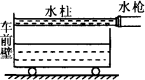 如圖所示,靜止在光滑水平面上的小車質(zhì)量為M=20 kg.從水槍中噴出的水柱的橫截面積為S=10 cm2,速度為v=10 m/s,水的密度為ρ=1.0×103 kg/m3.若用水槍噴出的水從車后沿水平方向沖擊小車的前壁,且沖擊到小車前壁的水全部沿前壁流進小車中.當有質(zhì)量為m=5 kg的水進入小車時,試求: