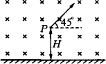 (2)若某時(shí)刻微粒運(yùn)動(dòng)到場中距地面高度為H的P點(diǎn),速度與水平方向成45°,如圖所示.則該微粒至少須經(jīng)多長時(shí)間運(yùn)動(dòng)到距地面最高點(diǎn)?最高點(diǎn)距地面多高?