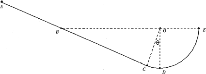 如圖所示,ABCDE為固定在豎直平面內(nèi)的軌道,ABC為直軌道,AB光滑,BC粗糙,CDE為光滑圓弧軌道,軌道半徑為R,直軌道與圓弧軌道相切于C點(diǎn),其中圓心O與BE在同一水平面上,OD豎直,∠COD=