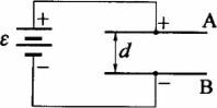 如圖所示,電容量為C的平行板電容器的極板A和B水平放置,相距為d,與電動(dòng)勢(shì)為ε、內(nèi)阻可不計(jì)的電源相連.設(shè)兩板之間只有一個(gè)質(zhì)量為m的導(dǎo)電小球,小球可視為質(zhì)點(diǎn).已知:若小球與極板發(fā)生碰撞,則碰撞后小球的速度立即變?yōu)榱,帶電狀態(tài)也立即改變,改變后,小球所帶電荷符號(hào)與該極板相同,電量為極板電量的a倍(a〈1).不計(jì)帶電小球?qū)O板間勻強(qiáng)電場(chǎng)的影響.重力加速度為g.
