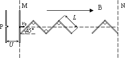 如圖所示,一個(gè)質(zhì)量為m、電量為e的靜止質(zhì)子,經(jīng)電壓為U的電場(chǎng)加速后,射入與其運(yùn)動(dòng)方向一致的磁感應(yīng)強(qiáng)度為B的勻強(qiáng)磁場(chǎng)MN區(qū)域內(nèi).在MN內(nèi),有n塊互成直角、長(zhǎng)為L的硬質(zhì)塑料板(不導(dǎo)電,寬度很窄,厚度不計(jì)).