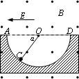 如圖所示,固定的半圓弧形光滑軌道置于水平方向的勻強(qiáng)電場和勻強(qiáng)磁場中,軌道圓弧半徑為R,磁感應(yīng)強(qiáng)度為B,方向垂直于紙面向外,電場強(qiáng)度為E,方向水平向左.一個質(zhì)量為m的小球(可視為質(zhì)點)放在軌道上的C點恰好處于靜止,圓弧半徑OC與水平直徑AD的夾角為α(sinα=0.8)