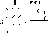如圖所示,電動機牽引一根原來靜止的、長L為1 m、質(zhì)量m為0.1 kg的導體棒MN上升,導體棒的電阻R為1 Ω,架在豎直放置的框架上,它們處于磁感應強度B為1T的勻強磁場中,磁場方向與框架平面垂直.當導體棒上升h=3.8 m時,獲得穩(wěn)定的速度,導體棒上產(chǎn)生的熱量為2 J,電動機牽引棒時,電壓表、電流表的讀數(shù)分別為7 V、1 A,電動機內(nèi)阻r為1 Ω,不計框架電阻及一切摩擦,求: