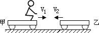 甲、乙兩輛小車質(zhì)量分別為m1=50 kg和m2=30 kg,質(zhì)量m=30 kg的小孩站在甲車上.兩車在光滑軌道上相向運(yùn)動(dòng),車速V1=3 m/s,V2=4 m/s,為避免兩車相撞,小孩至少以多大的水平速度(相對(duì)地面)跳到乙車上?