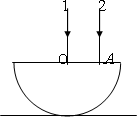 半徑為R的玻璃半圓柱體,橫截面如圖所示,圓心為O,放在水平桌面上,兩條平行單色紅光沿截面射向圓柱面,方向與底面垂直.光線1的入射點為圓心O,光線2的入射點為A,OA=