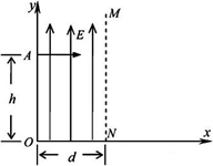如圖所示,在空間中取直角坐標(biāo)系Oxy,在第一象限內(nèi)平行于y軸的虛線MN與y軸距離為d,從y軸到MN之間的區(qū)域充滿一個(gè)沿y軸正方向的勻強(qiáng)電場(chǎng),場(chǎng)強(qiáng)大小為E.初速度可以忽略的電子經(jīng)過另一個(gè)電勢(shì)差為U的電場(chǎng)加速后,從y軸上的A點(diǎn)以平行于x軸的方向射入第一象限區(qū)域,A點(diǎn)坐標(biāo)為(0,h).已知電子的電量為e,質(zhì)量為m,加速電場(chǎng)的電勢(shì)差U>