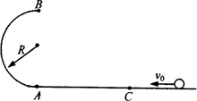 如圖所示,半徑R=0.40 m的光滑半圓環(huán)軌道處于豎直平面內(nèi),半圓環(huán)與粗糙的水平地面相切于圓環(huán)的端點(diǎn)A.一質(zhì)量m=0.10 kg的小球,以初速度v0=7.0 m/s在水平地面上向左作加速度a=3.0 m/s2的勻減速直線運(yùn)動(dòng),運(yùn)動(dòng)4.0 m后,沖上豎直半圓環(huán),通過B點(diǎn)后小球落在水平地面的C點(diǎn).求A、C間的距離(取重力加速度g=10 m/s2).