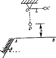 如圖所示,在同一豎直平面內(nèi),一輕質(zhì)彈簧一端固定,另一端恰好與水平線AB平齊,靜止放于光滑斜面上,距C為L的輕質(zhì)細(xì)線一端固定在O點(diǎn),中車端系一質(zhì)量為m的小球,將細(xì)線拉至水平,此時(shí)小球在位置C,由靜止釋放小球,小球到達(dá)最低點(diǎn)D時(shí),細(xì)繩剛好被拉斷,D點(diǎn)到AB的距離為h,之后小球在運(yùn)動(dòng)過程中恰好與彈簧接觸并沿斜面方向?qū)椈蓧嚎s,彈簧的最大壓縮量為x.