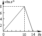 “10米折返跑”的成績反應(yīng)了人體的靈敏素質(zhì).測定時,在平直跑道上,受試者以站立式起跑姿勢站在起點終點線前,當(dāng)聽到“跑”的口令后,全力跑向正前方10米處的折返線,測試員同時開始計時.受試者到達(dá)折返線處時,用手觸摸折返線處的物體(如木箱),再轉(zhuǎn)身跑向起點終點線,當(dāng)胸部到達(dá)起點終點線的垂直面時,測試員停表,所用時間即為“10米折返跑”的成績.設(shè)受試者起跑的加速度為4 m/s2,運動過程中的最大速度為4 m/s,快到達(dá)折返線處時需減速到零,加速度的大小為8 m/s2,返回時達(dá)到最大速度后不需減速,保持最大速度沖線.受試者在加速和減速階段運動均可視為勻變速直線運動.問該受試者“10米折返跑”的成績?yōu)槎嗌倜耄?/P>