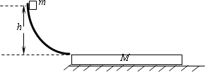 如圖所示,在光滑水平地面上放置質(zhì)量M=2 kg的長木板,木板上表面與左側(cè)固定的光滑圓弧相切.一質(zhì)量m=1 kg的小滑塊自弧面上高h處由靜止自由滑下,在木板上滑行t=1 s后,滑塊和木板以共同速度v=1 m/s勻速運動,取g=10 m/s2.求: