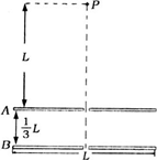 如圖所示,帶有等量異種電荷的兩平行金屬板A和B水平放置,板間勻強電場的場強大小為E,方向豎直向下,兩板正中央均開有小孔,板長為L,板間距離為L/3,整個裝置處于真空環(huán)境中,在A板小孔正上方、距小孔為L處的P點,由靜止釋放一個帶正電的小球(可視為質(zhì)點),小球進入AB兩板間時加速度變?yōu)樵瓉淼?倍,設小球通過上、下孔時的速度分別為v1、v2.現(xiàn)改變兩板的帶電性質(zhì),使兩板間場強方向與原來相反,但大小不變,同時在兩板之間加上垂直紙面想里的水平勻強磁場,再次在P點由靜止釋放該小球,小球從A板小孔進入兩板間后,不碰撞極板而能從兩板間飛出.求:(重力加速度為g)