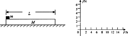 如圖所示,質(zhì)量M=1 kg的木板靜止放在粗糙的水平地面上,木板與地面間的動摩擦因數(shù)μ1=0.1,在木板的左端放置一個質(zhì)量m=1 kg、大小可以忽略的鐵塊,鐵塊與木板間的動摩擦因數(shù)μ2=0.4,取g=10 m/s2,可認為最大靜摩擦力等于滑動摩擦力.若在鐵塊的右端施加一個大小從零開始連續(xù)增大的水平向右的力F作用,請通過計算在圖中畫出鐵塊受到的摩擦力f隨拉力F大小變化的圖象.