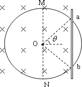 R、單位長度電阻為λ的均勻導電圓環(huán)固定在水平面上,圓環(huán)中心為O.勻強磁場垂直水平方向向下,磁感強度為B.平行于直徑MON的導體桿,沿垂直于桿的方向向右運動.桿的電阻可以忽略不計,桿與圓環(huán)接觸良好.某時刻,桿的位置如圖,∠aob=2查看答案和解析>>