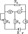 如圖所示的電路中,電源的內(nèi)阻r=2 Ω,R3=8 Ω,L是一個“12 V,12 W”的小燈泡,當調(diào)節(jié)R1使電流表讀數(shù)為1.5 A時,電壓表的示數(shù)剛好為零,并且小燈泡L正常發(fā)光,求: