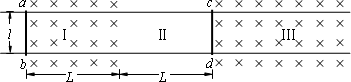 如圖所示,空間存在垂直紙面向里的兩個勻強磁場區(qū)域,磁感應(yīng)強度大小均為B,磁場Ⅰ寬為L,兩磁場間的無場區(qū)域為Ⅱ,寬也為L,磁場Ⅲ寬度足夠大.區(qū)域中兩條平行直光滑金屬導(dǎo)軌間距為l,不計導(dǎo)軌電阻,兩導(dǎo)體棒ab、cd的質(zhì)量均為m,電阻均為r.ab棒靜止在磁場Ⅰ中的左邊界處,cd棒靜止在磁場Ⅲ中的左邊界處,對ab棒施加一個瞬時沖量,ab棒以速度v1開始向右運動.
