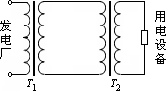 某發(fā)電廠通過(guò)兩條輸電線向遠(yuǎn)處的用電設(shè)備供電.當(dāng)發(fā)電廠輸出的功率為P0時(shí),額定電壓為U的用電設(shè)備消耗的功率為P1.若發(fā)電廠用一臺(tái)升壓變壓器T1先把電壓升高,仍通過(guò)原來(lái)的輸電線供電,達(dá)到用電設(shè)備所在地,再通過(guò)一臺(tái)降壓變壓器T2把電壓降到用電設(shè)備的額定電壓,供用電設(shè)備使用,如圖所示,這樣改動(dòng)后,當(dāng)發(fā)電廠輸出的功率仍為P0,用電設(shè)備可獲得的功率增加至P2.試求所用升壓變壓器T1的原線圈與副線圈的匝數(shù)比N1/N2以及降壓變壓器T2的原線圈與副線圈的匝數(shù)比n1/n2各為多少?