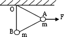 兩個(gè)相同的小球A和B,質(zhì)量均為m,用長(zhǎng)度相同的兩根細(xì)線把A、B兩球懸掛在水平天花板上的同一點(diǎn)O,并用長(zhǎng)度相同的細(xì)線連接A、B兩小球,然后,用一水平方向的力F作用在小球A上,此時(shí)三根細(xì)線均處于直線狀態(tài),且OB細(xì)線恰好處于豎直方向,如圖所示.如果不考慮小球的大小,兩小球均處于靜止?fàn)顟B(tài),則