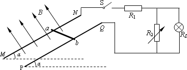 如圖所示,兩足夠長(zhǎng)平行光滑的金屬導(dǎo)軌MN、PQ相距為L,導(dǎo)軌平面與水平面夾角α=30°,導(dǎo)軌電阻不計(jì).磁感應(yīng)強(qiáng)度為B的勻強(qiáng)磁場(chǎng)垂直導(dǎo)軌平面向上,長(zhǎng)為L的金屬棒ab垂直于MN、PQ放置在導(dǎo)軌上,且始終與導(dǎo)軌電接觸良好,金屬棒的質(zhì)量為m、電阻為R.兩金屬導(dǎo)軌的上端連接右端電路,燈泡的電阻RL=4R,定值電阻R1=2R,電阻箱電阻調(diào)到使R2=12R,重力加速度為g,現(xiàn)將金屬棒由靜止釋放,試求: