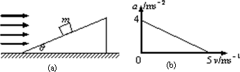 =37°的固定粗糙斜面由靜止開始向下運(yùn)動(dòng),風(fēng)對(duì)物體的作用力沿水平方向向右,其大小與風(fēng)速v成正比,比例系數(shù)用k表示,物體加速度a與風(fēng)速v的關(guān)系如圖(b)所示.求: